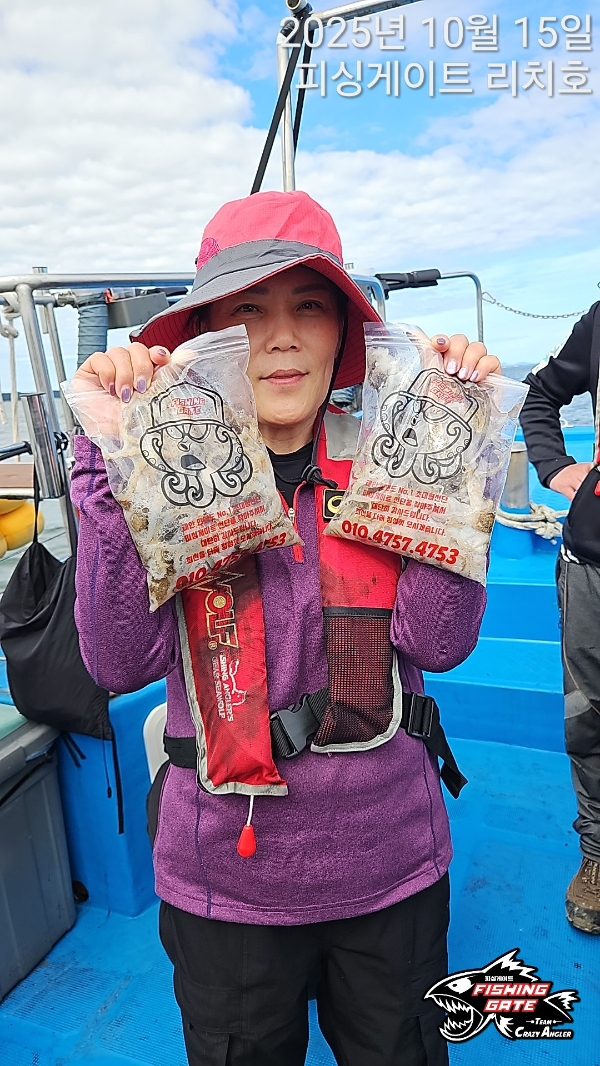 |         안녕하세요 안면도 배낚시패키지 선상낚시 숙박 무한바베큐 조식 패키지 출항중인 피싱게이트 선단의 리치호 10월15일 배낚시패키지로 여행오신 초보조사님들과 함께 오전시간배 쭈꾸미낚시 출항 하였습니다. 처음하시는 분들이 대부분이셔서 많은 조황은 아니지만 여행와서 직접 낚을 자연산 쭈꾸미로 펜션 들어가셔서 맛있게 즐길 수있게 되어 감사드립니다. 처음 감잡는데 고생하신 초보조사님들께 감사드리고 맛있게 드시길 바랄께요 안면도 배낚시패키지 피싱게이트 선단의 리치호 항상 출항 예정이오니 연락 주시면 최선을 다해 정성껏 모시겠습니다. 감사합니다.  ■ 안면도 No.1 대형선단 18척 이상 항시대기 ■ 피싱게이트 예약문의 : 010 - 4757 - 4753 ■ 피싱게이트 사무실 : 충남 태안군 안면읍 백사장 1길 28 1층 피싱게이트 ■ 출항지 : 방포항, 내포항(라암도항), 구매항, 영목항, 그늘미항