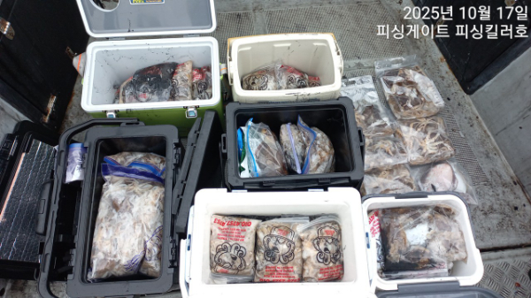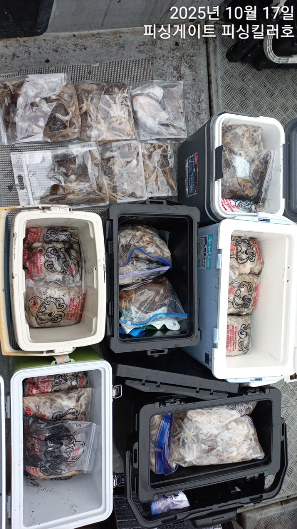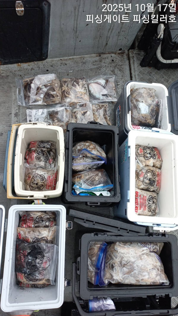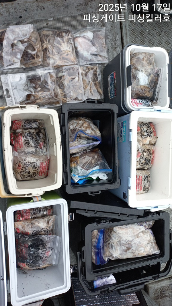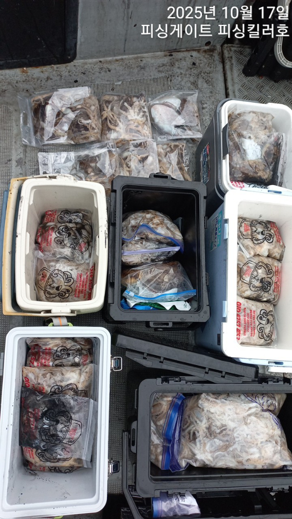 |         안녕하세요 안면도 쭈갑 병행낚시 출항한 피싱게이트 선단의 피싱킬러호 10월17일 15명의 조사님들과 함께 종일배 출항 하였습니다. 많은 조황은 아니지만 오늘은 조사님들께서의 편차가 좀 심했네요 그래도 열심히 낚아주신 15명의 조사님들께 감사드리고 올라가시는 길 안전운전 하시길 바라겠습니다. 안면도 쭈꾸미 갑오징어낚시 피싱게이트 선단의 피싱킬러호 항상 출항 예정이오니 연락 주시면 최선을 다해 정성껏 모시겠습니다. 감사합니다.  ■ 안면도 No.1 대형선단 18척 이상 항시대기 ■ 피싱게이트 예약문의 : 010 - 4757 - 4753 ■ 피싱게이트 사무실 : 충남 태안군 안면읍 백사장 1길 28 1층 피싱게이트 ■ 출항지 : 방포항, 내포항(라암도항), 구매항, 영목항, 그늘미항