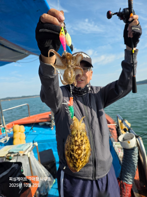 |           안녕하세요 안면도 구매항 갑오징어 낚시체험 시간배 출항중인 피싱게이트 선단의 나무호 10월23일 5명의 조사님들과 함께 오전시간배 출항하였습니다. 많은 조황은 아니지만 신발짝 싸이즈도 많이 나와주었고 딱박따박 갑오징어들이 짧은 시간동안 나와주었네요 전일 함께하신 5명의 조사님들께 감사드리고 조심히 올라가세요 안면도 구매항 갑오징어낚시 오전 오후 시간배 항상 출항 예정이오니 연락 주시면 최선을 다해 정성껏 모시겠습니다. 감사합니다.  ■ 안면도 No.1 대형선단 18척 이상 항시대기 ■ 피싱게이트 예약문의 : 010 - 4757 - 4753 ■ 피싱게이트 사무실 : 충남 태안군 안면읍 백사장 1길 28 1층 피싱게이트 ■ 출항지 : 방포항, 내포항(라암도항), 구매항, 영목항, 그늘미항