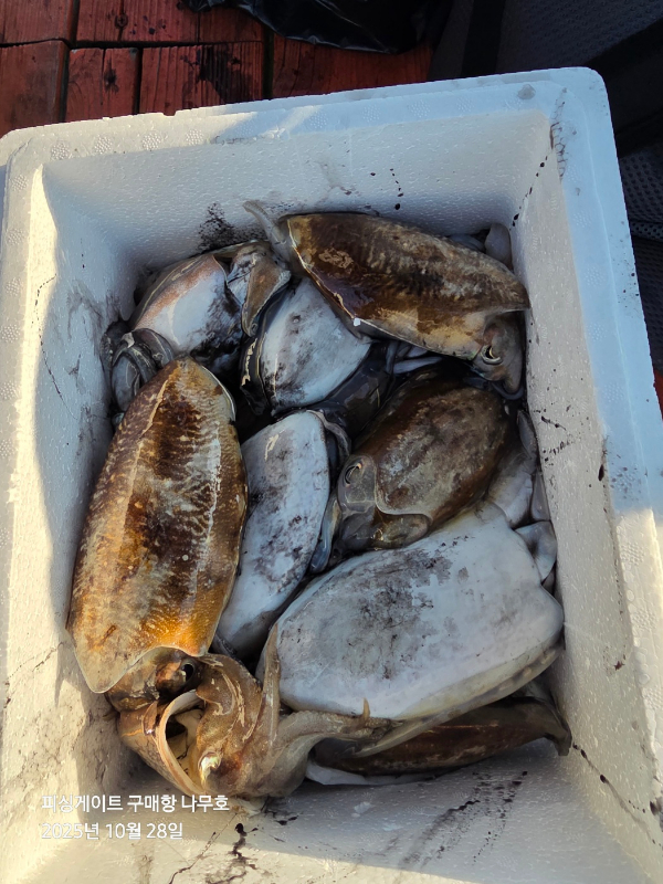 |         안녕하세요 안면도 구매항 쭈꾸미낚시 출항중인 피싱게이트 선단의 나무호 10월28일 7명의 독배 조사님들과 함께 종일배 출항하였습니다. 쭈꾸미낚시하다 조사님들께서 갑오징어로 변경하자하여 갑오징어로 변경 후 출항 하였습니다. 많은 조황은 아니지만 모두 열심히 낚아주셨네요 오늘 함께하신 7명의 조사님들께 감사드립니다. 안면도 구매항 쭈꾸미낚시 피싱게이트 선단의 나무호 물때 좋은 월말이오니 연락 주시면 최선을 다해 정성껏 모시겠습니다. 감사합니다.  ■ 안면도 No.1 대형선단 18척 이상 항시대기 ■ 피싱게이트 예약문의 : 010 - 4757 - 4753 ■ 피싱게이트 사무실 : 충남 태안군 안면읍 백사장 1길 28 1층 피싱게이트 ■ 출항지 : 방포항, 내포항(라암도항), 구매항, 영목항, 그늘미항