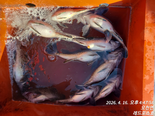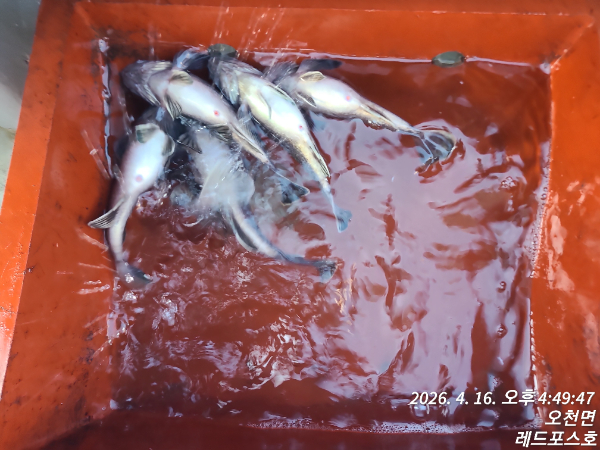 안녕하세요안면도 영목항 출항중인피싱게이트 선단의 레드포스호4월16일 13명의 조사님들과 함께오후시간배 출항 하였습니다.4월 16일, 따뜻한 봄 햇살 아래영목항 레드포스호 오후시간배 출항
